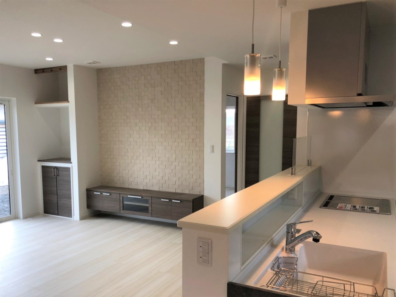 ナチュラルモダンな外観に内装は白を基調に落ち着いた雰囲気のお家です。
